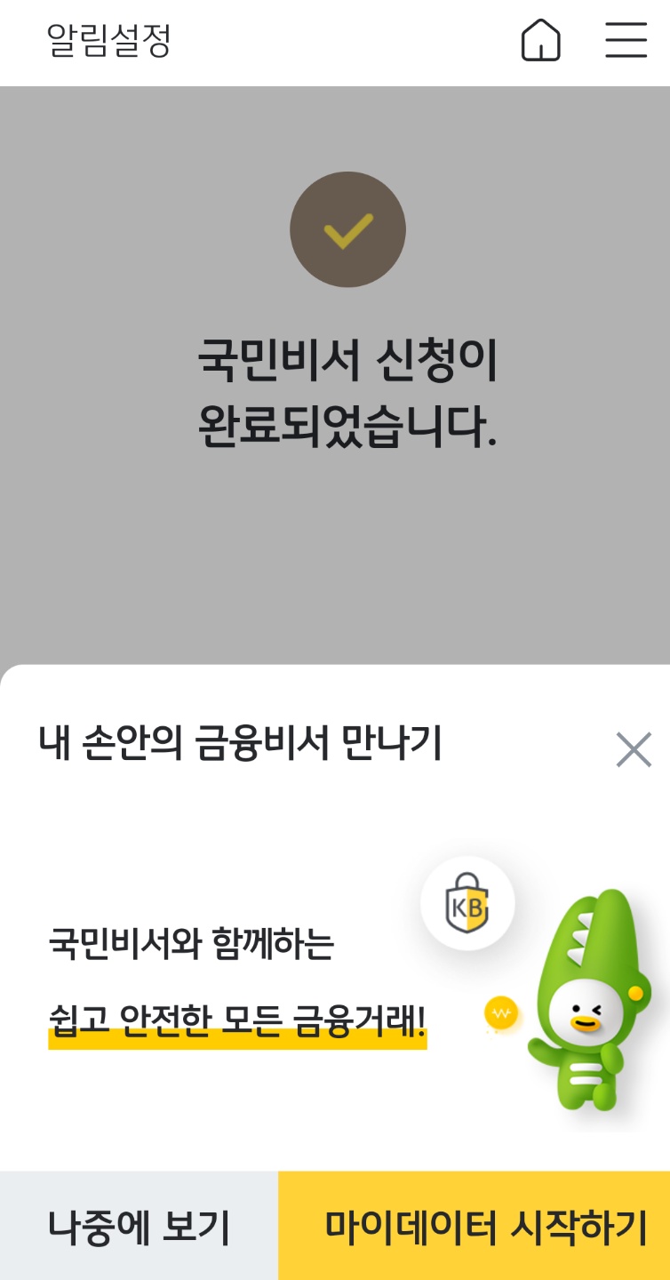 | KB스타뱅킹 국민비서 알림 설정하기 (0) | 2022.08.11 |