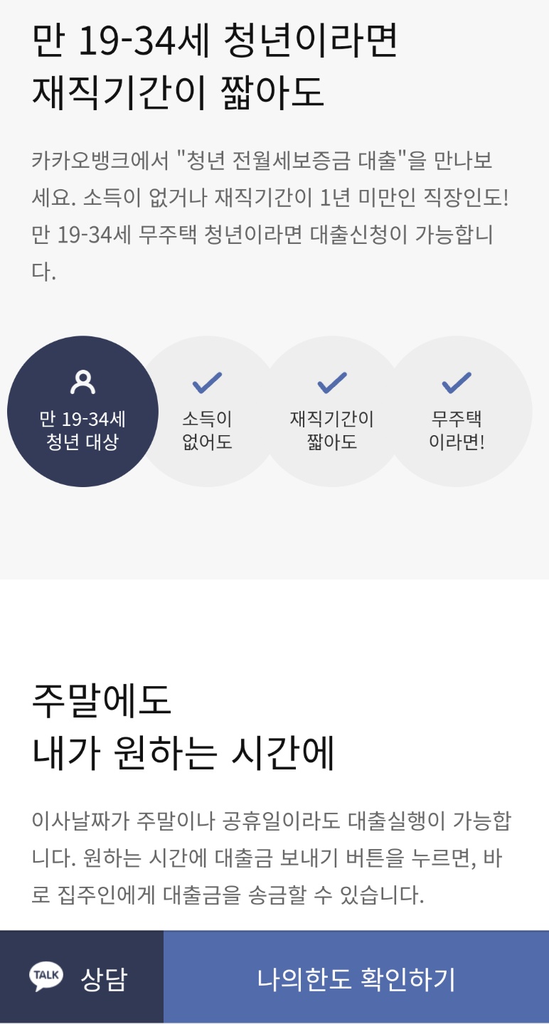 카카오 뱅크 전월세 대출 조건 및 한도 조회하기