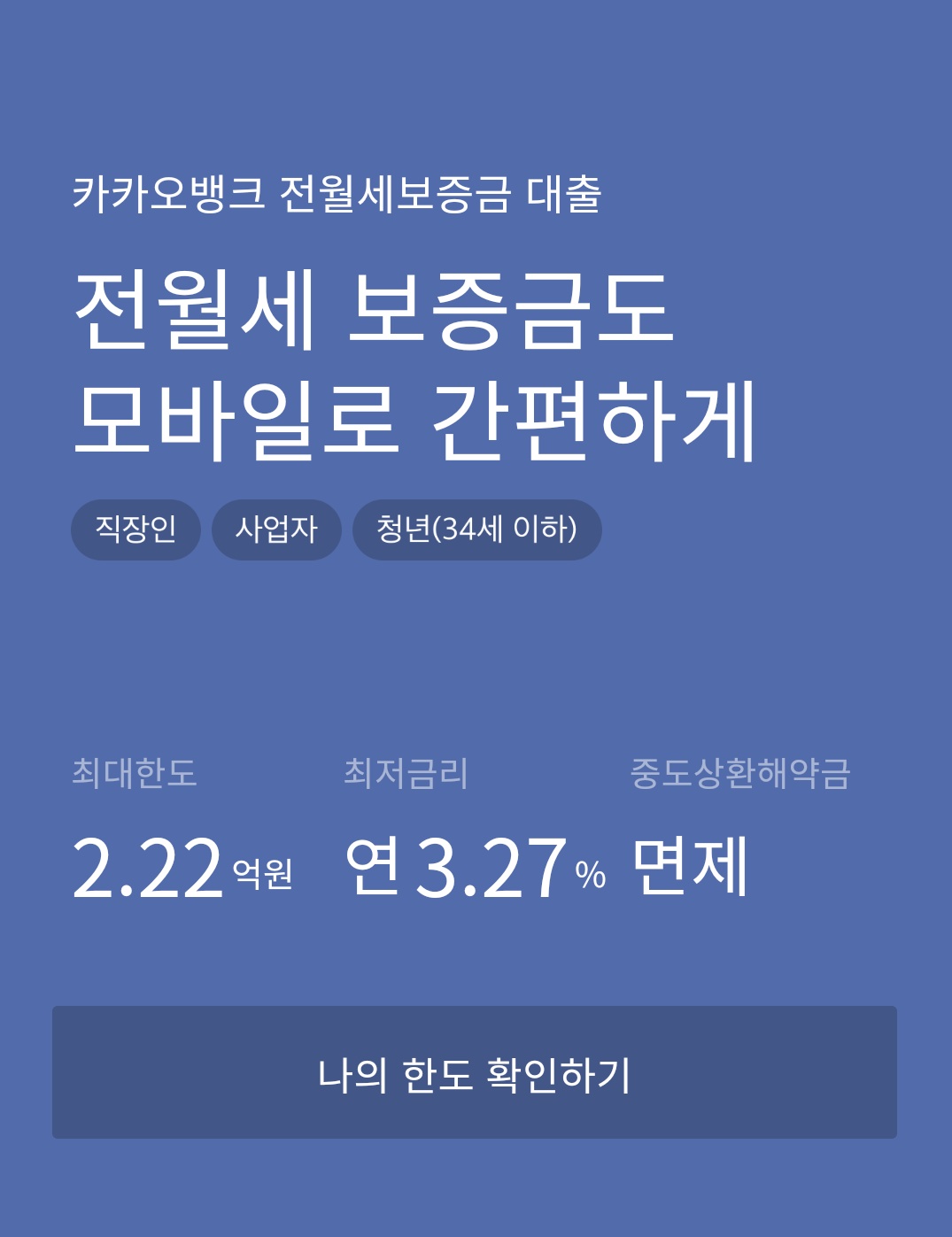 카카오 뱅크 전월세 대출 조건 및 한도 조회하기 카카오 뱅크 전월세 보즘금 대출, 이제 전월세 보증금도 모바일로 간편하게 받으실 수 있습니다. 직장인은 물론, 사업자도 걱정없이 전월세보