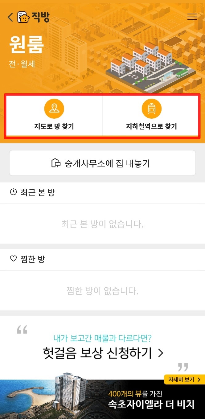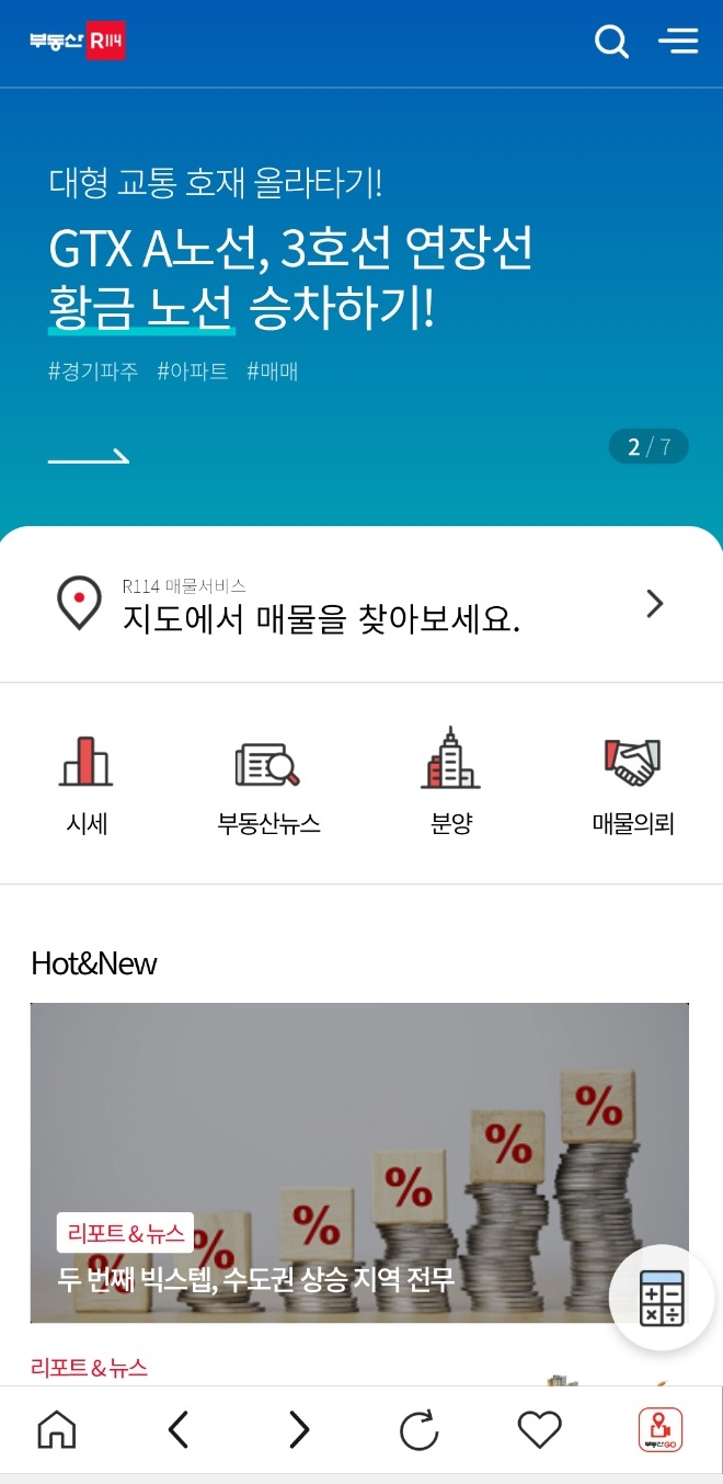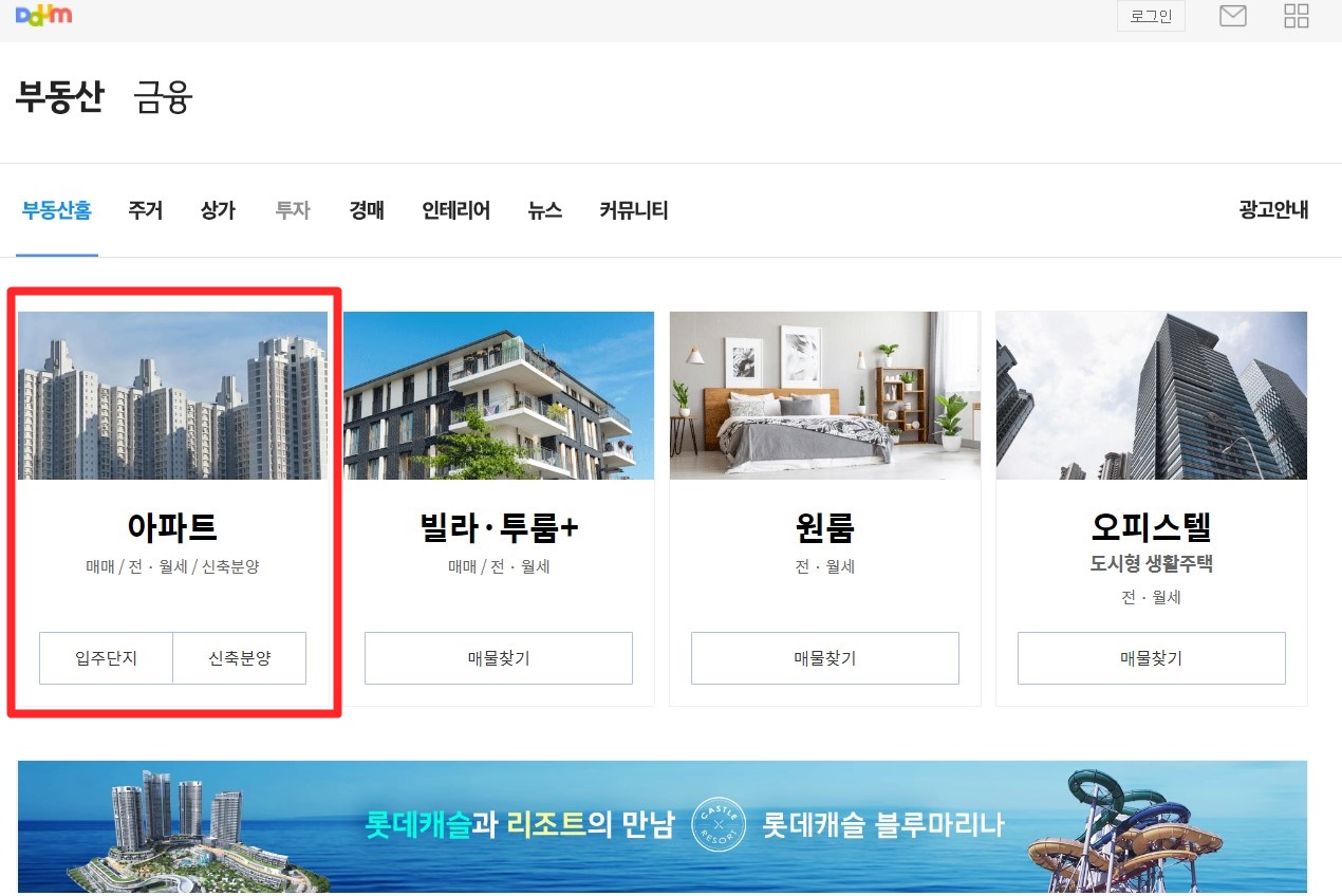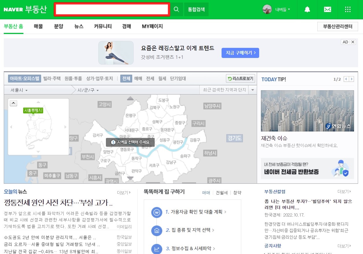 사이트에 접속하셔서 부동산 홈에 들어가시면 아래와 같은 그림을 보실 수 있습니다.