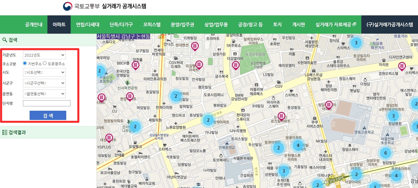 서울 아파트 뿐만 아니라 전국 아파트 어디든 가능하니 입력하시면 아래와 같은 그림을 보실 수 있을거에요.