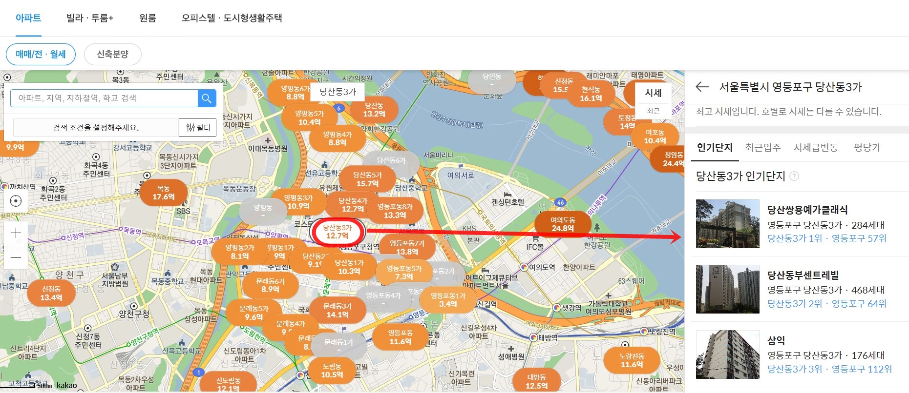 자 다 되셨다면 아까 본인이 입력했던 아파트를 보실 수 있을겁니다.