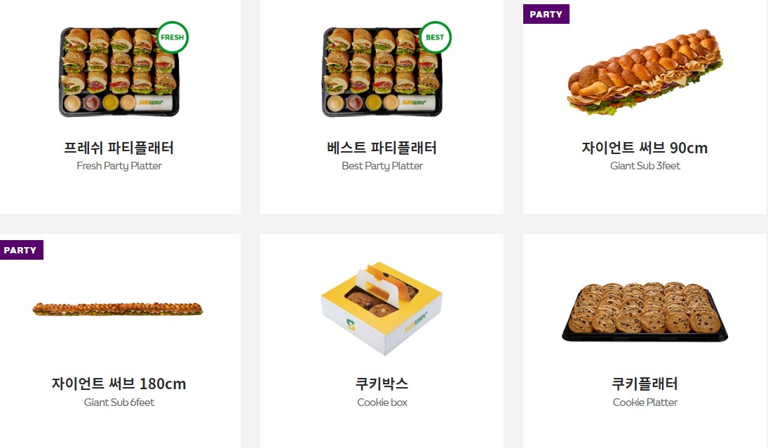 터키, 참치, 스파이시 이탈리안, 이탈리안 비엠티, 서브웨이 클럽으로 구성된 모두의 입맛을 만족시키는 베스트 파티플래터