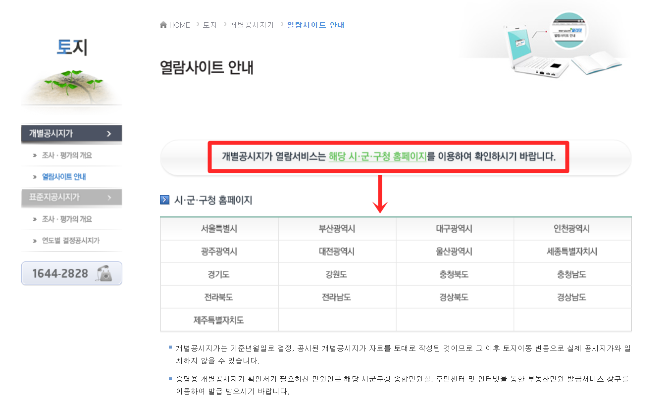 개별 공시지가 조회 방법