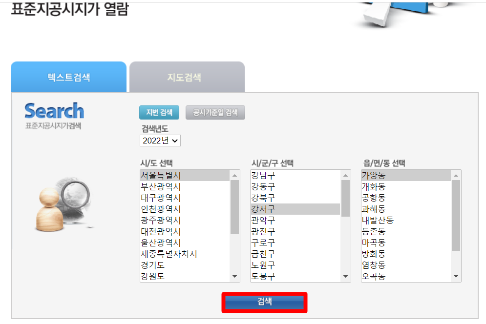 표준지 공시지가 조회 방법