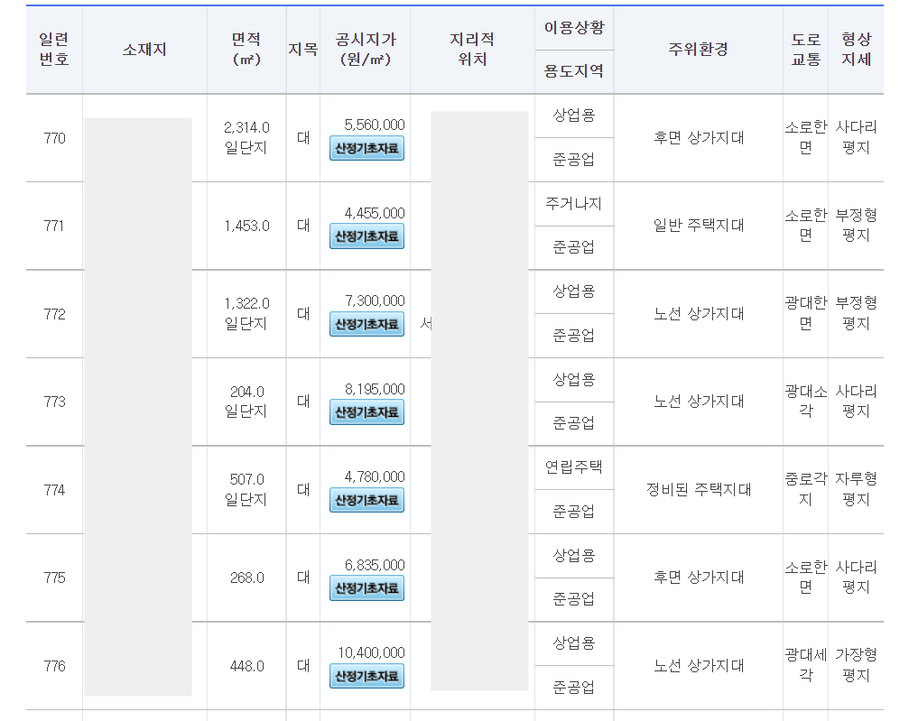 또한 국토교통부의 장관이 직접 조사 평가하여 표준지의 단위면적당 적정가격을 산정하게 되는 것을 표준지 공시지가라고 합니다. 매년 1월1일을 기점으로 토지 가격의 기준점을 잡게 됩니다.