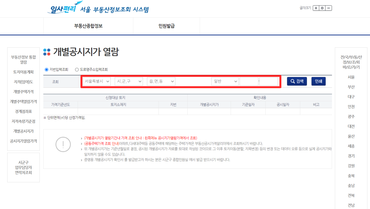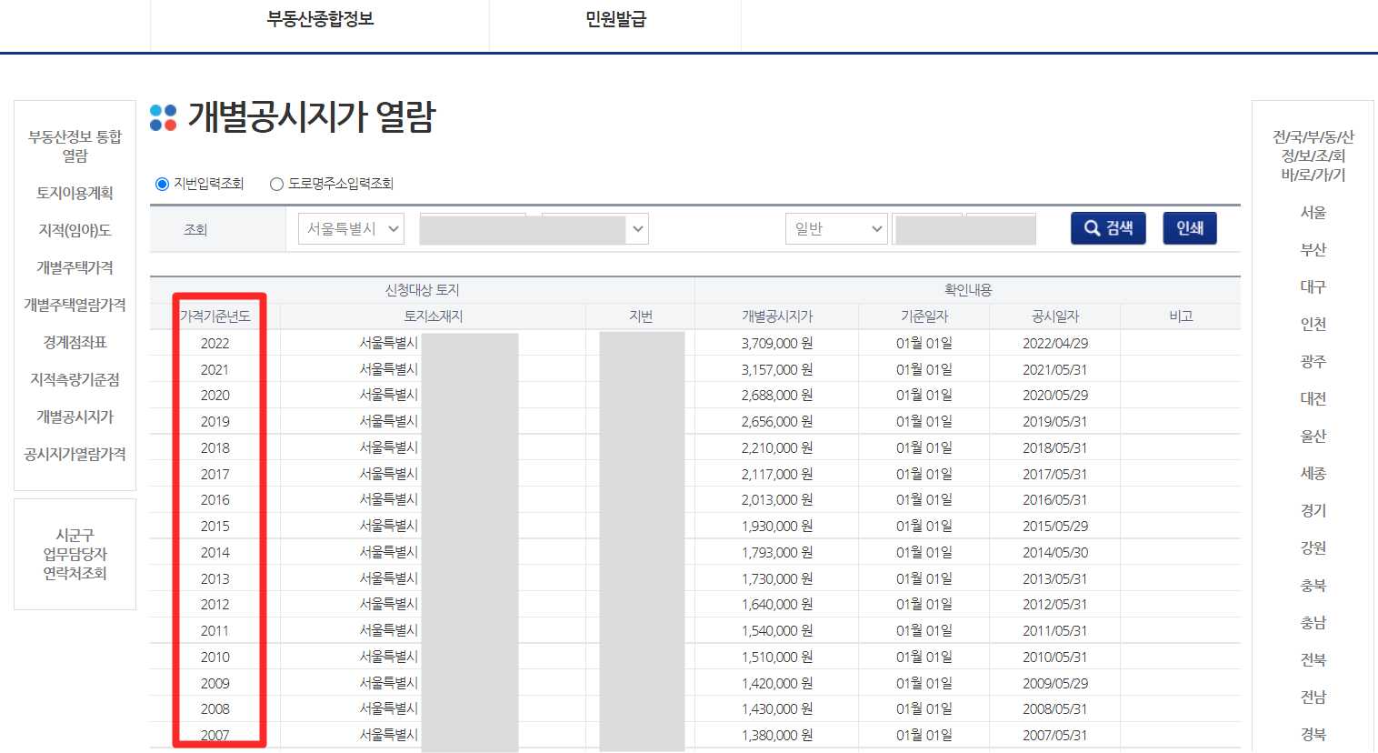3. 공시지가 조회 방법