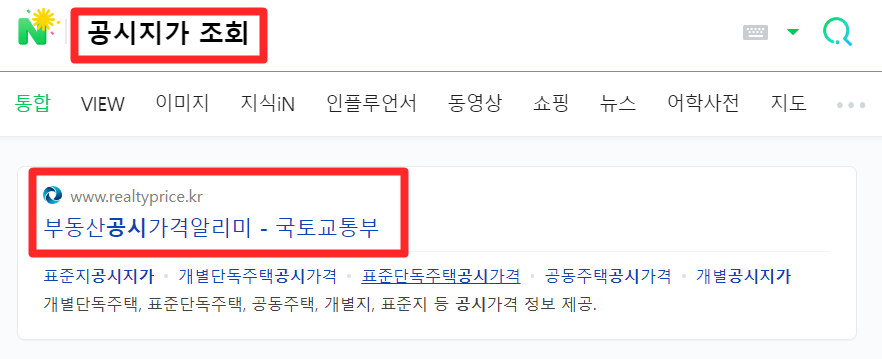 그러면 부동산공시가격알리미 - 국토교통부라는 사이트가 맨 상단에 보이실겁니다. 그 사이트를 클릭해주세요.