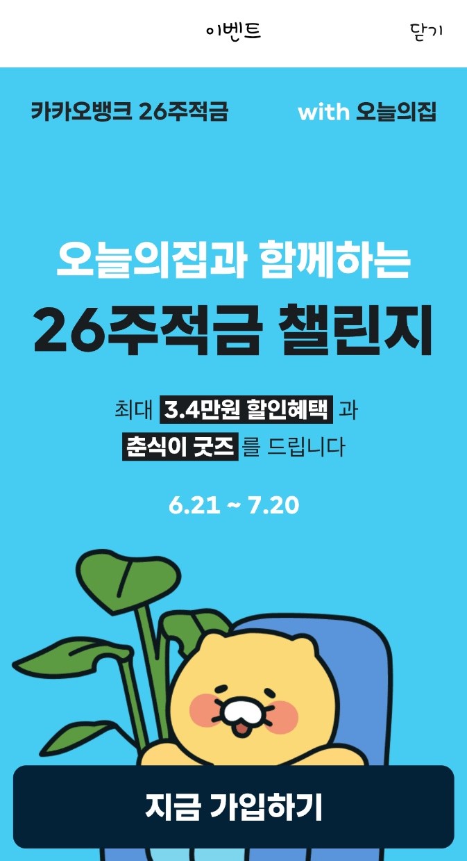 카카오 뱅크 오늘의 집과 함께하는 춘식이 26주 적금 가입하기